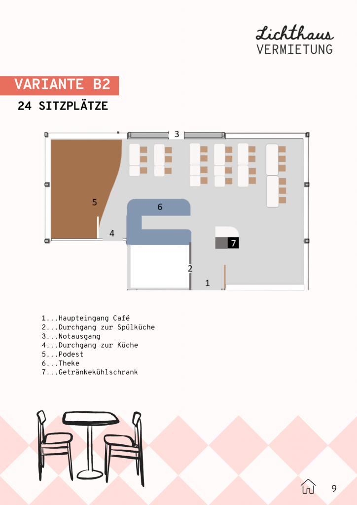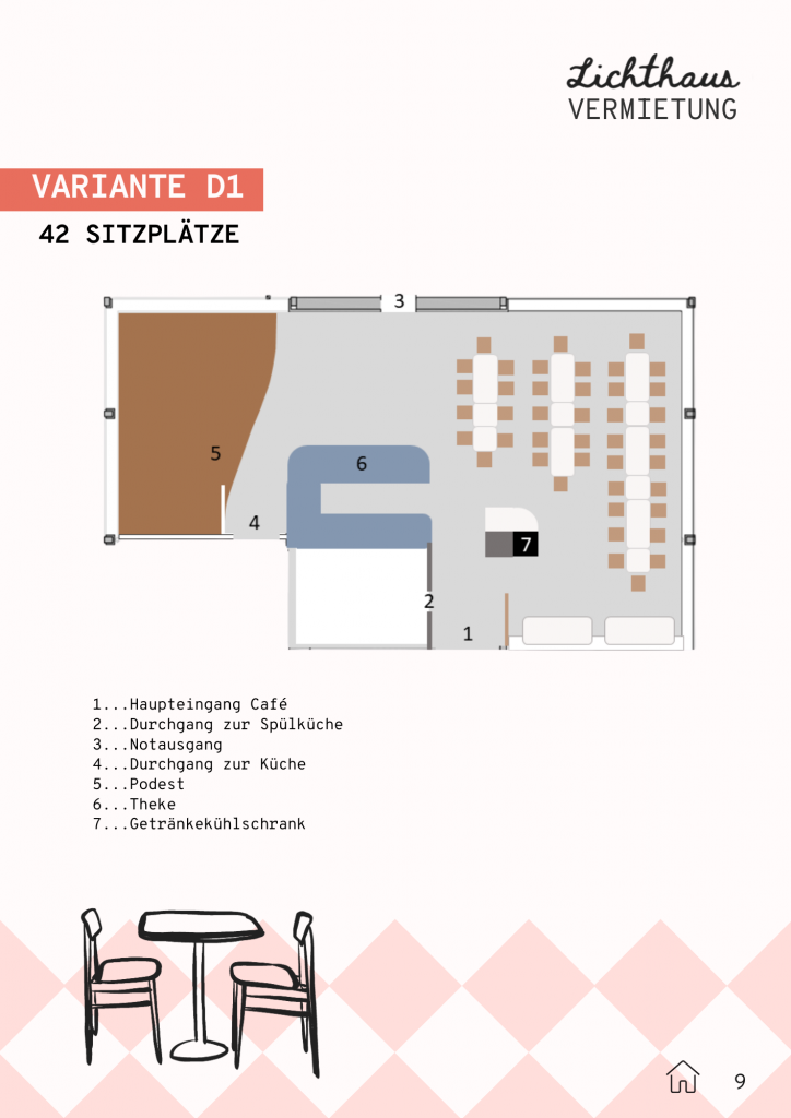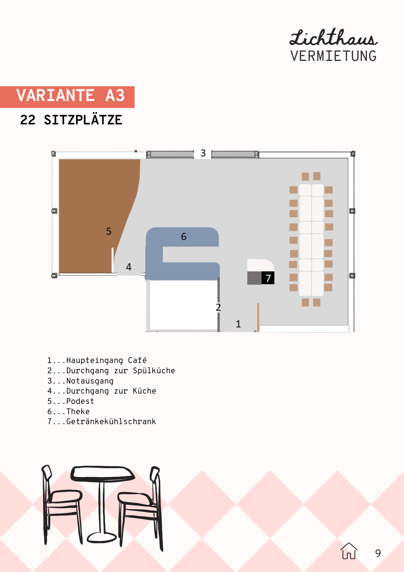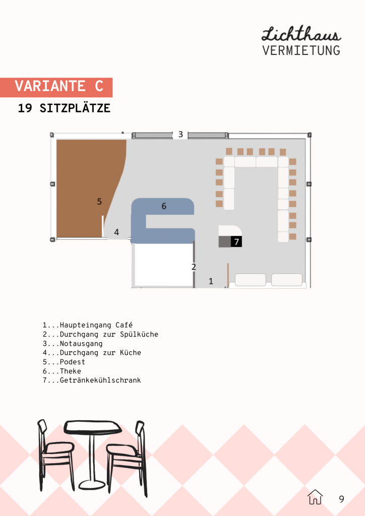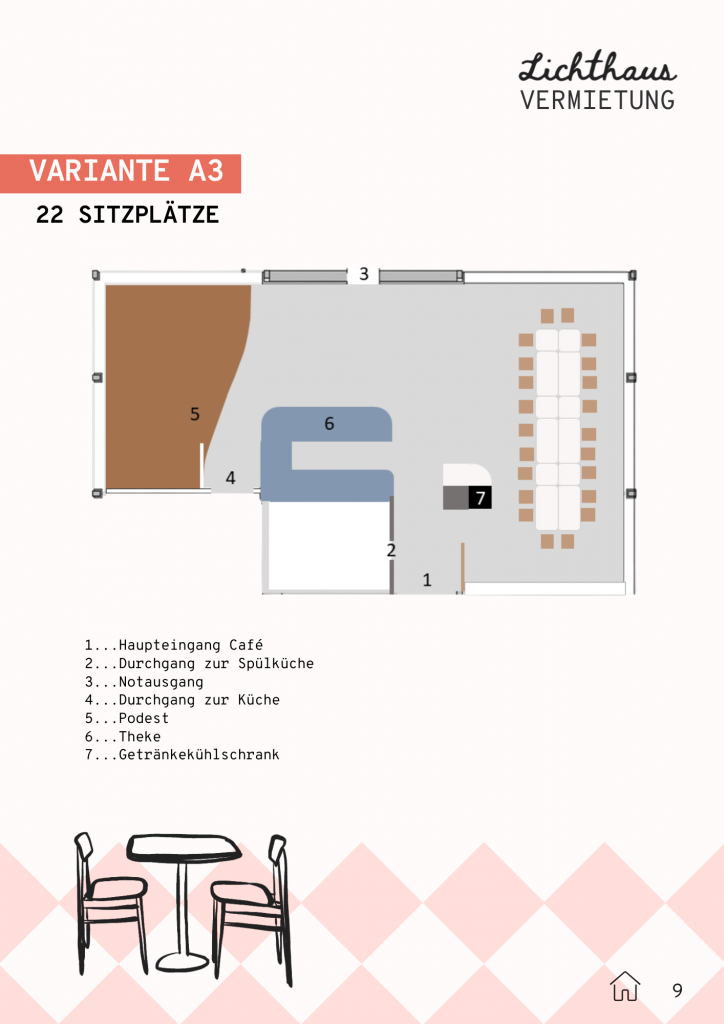 Im Mietpreis inbegriffen ist die Nutzung des Mobiliars unseres Cafés.