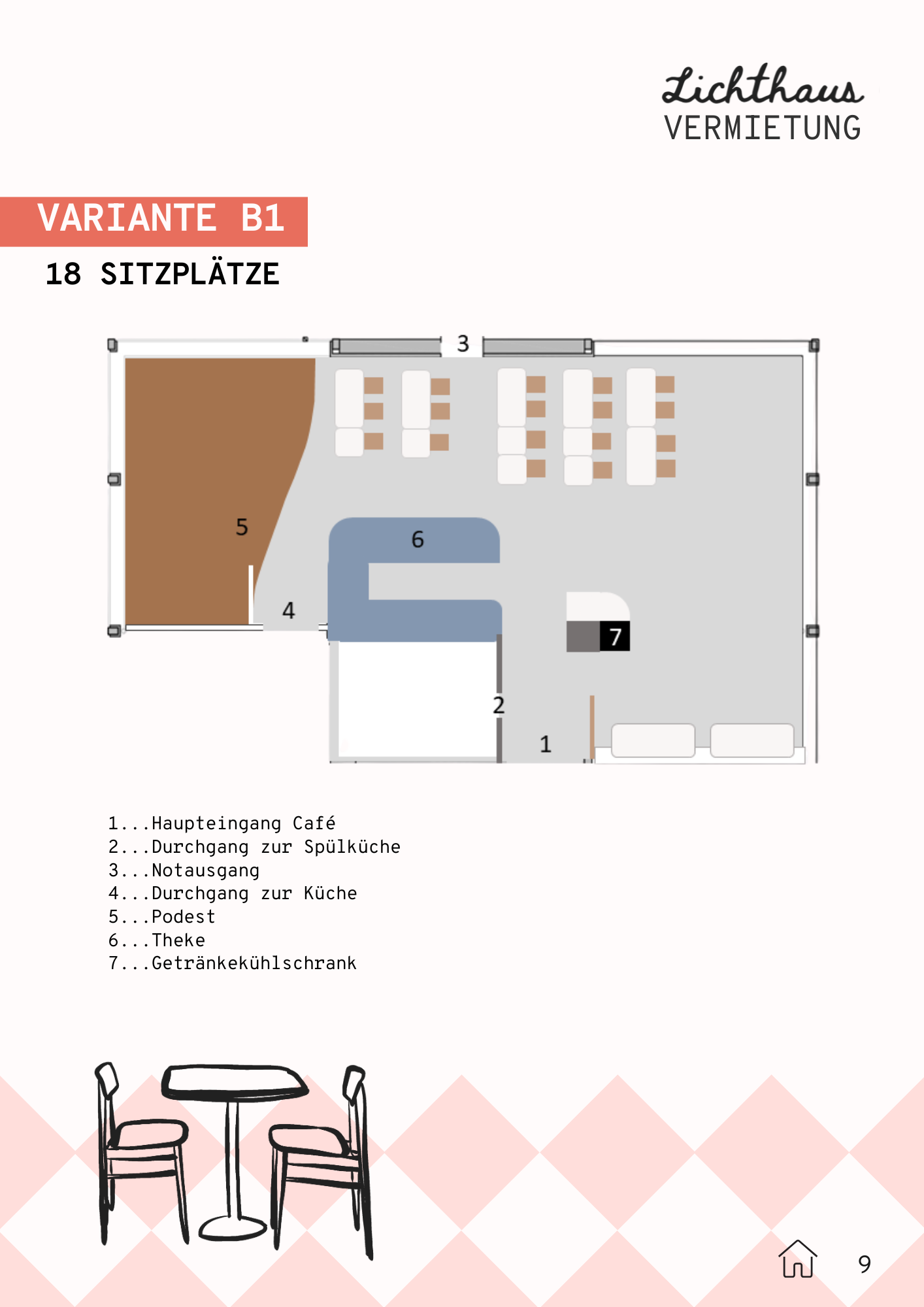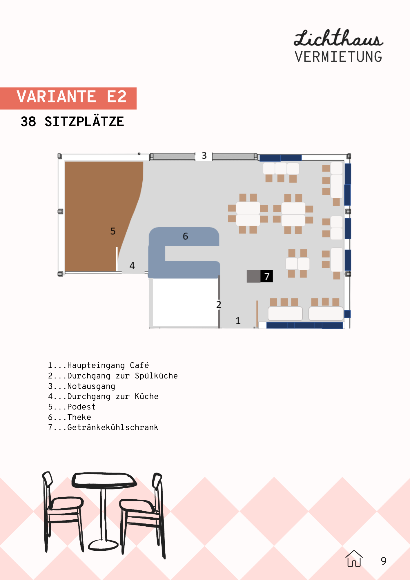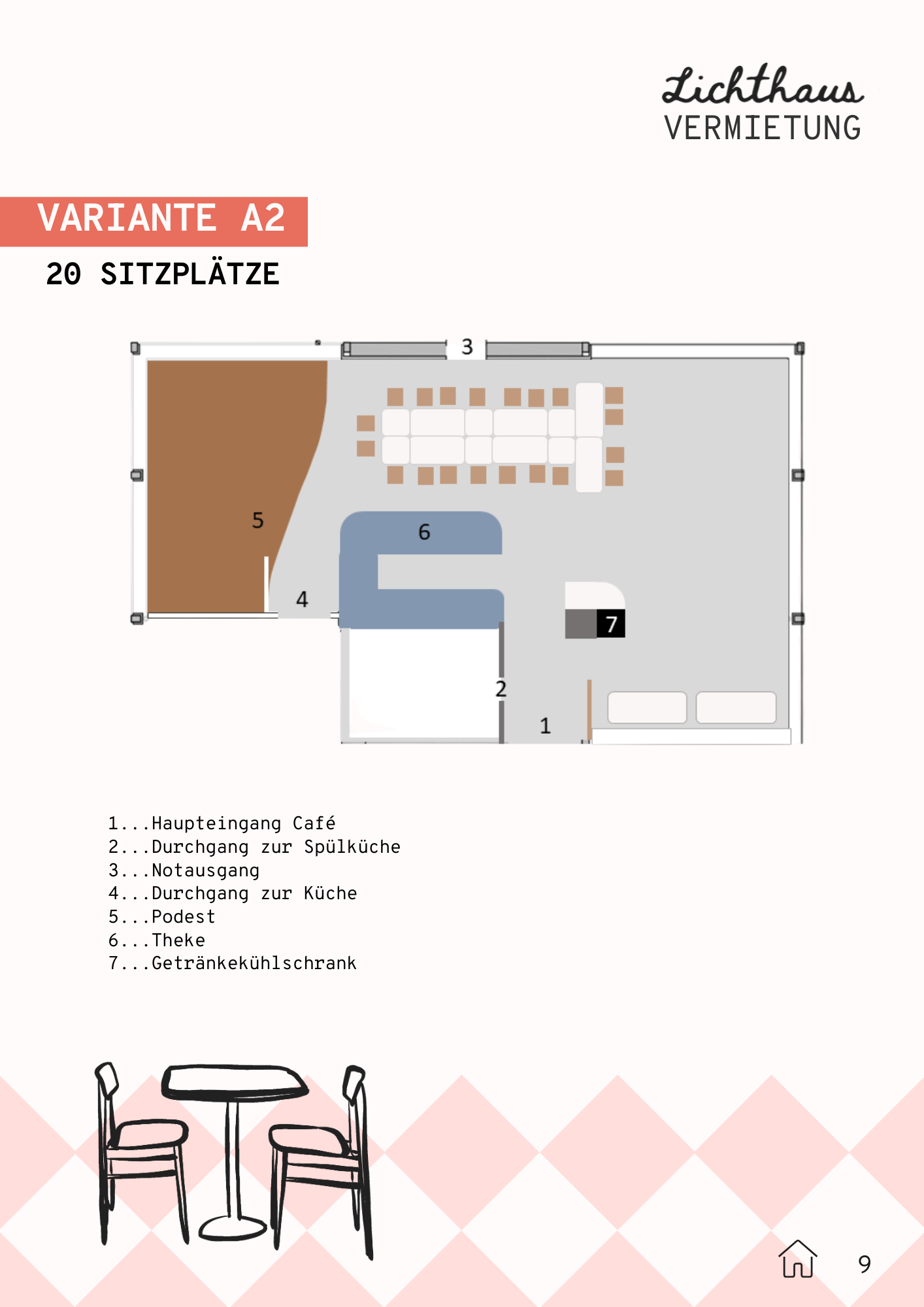 Im Mietpreis inbegriffen ist die Nutzung des Mobiliars unseres Cafés.
