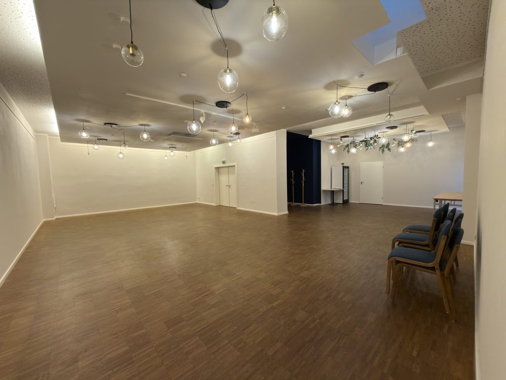 Du suchst eine passende Location für deine Veranstaltung in Halle? Bei uns bist du genau richtig! Im Obergeschoss des Lichthauses versteckt sich ein ca. 90m² großer Saal mit Kapazität für bis zu 50 Personen. Egal ob für private oder geschäftliche Vorhaben, unser Saal eignet sich perfekt für Seminare, Workshops, Feierlichkeiten und vieles mehr. Aufgrund seiner Form ist er vielfältig einsetzbar.